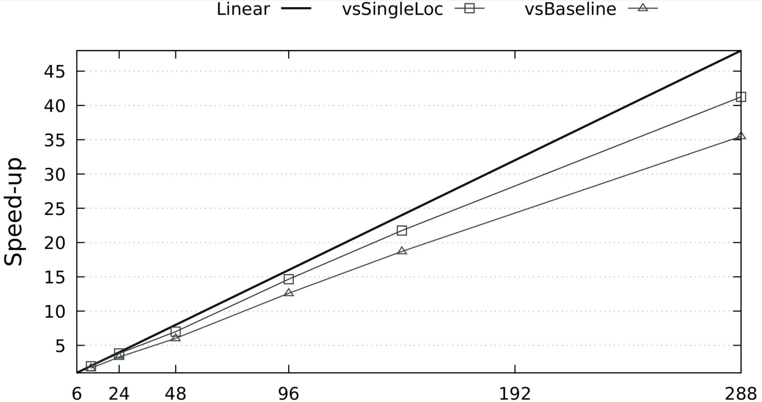 84% of the linear speedup vs. the same application on one computer node. 74% of the linear speedup vs. the optimized baseline in CUDA on one computer node. See Carneiro et al. (2021).
